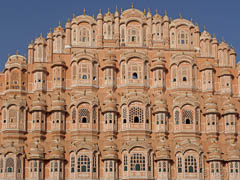 Fotostopp am Hawa Mahal (Palast der Winde), Besuch des Stadtpalastes und des königlichen Observatoriums, sowie ein Elefantenritt zum Amber Fort.