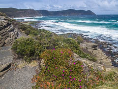 Von St. Helens zur Binalong Bay und dann weiter zu den "Gardens" der Bay of Fire mit ihren rötlichen Steinen. Im Anschluss weiter zur Burns Bay, dem Beerbarrel Beach, sowie den Peron Sanddünen.